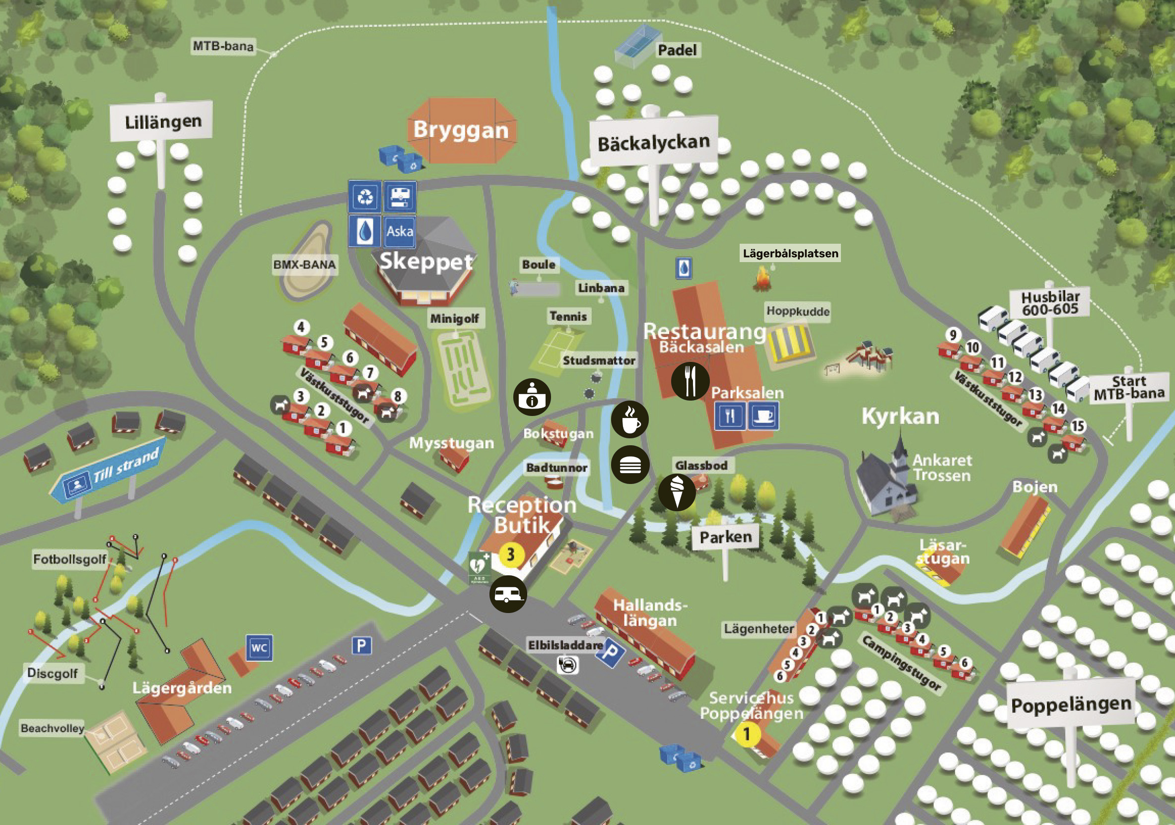 In/utcheckning av rum, stugor, husvagn och camping sker i Gullbrannagårdens reception. Här kan du även hämta konferensprogram. Kontakt: 035-241 21 00, gullbrannagarden.se.